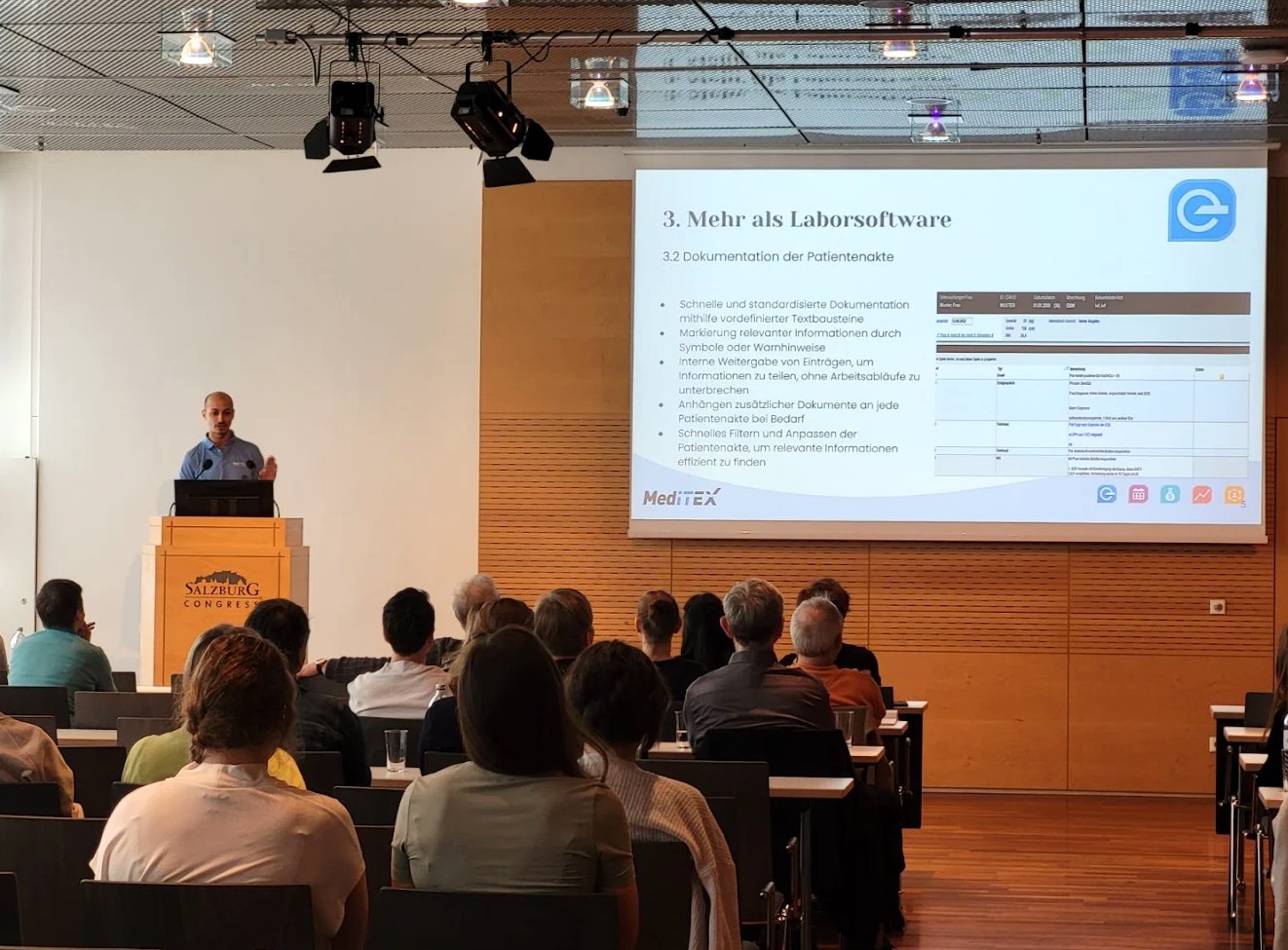 Im Rahmen des Vortrags haben wir auch unsere aktuellen Entwicklungen vorgestellt: Mit MedITEX Connect schaffen wir neue Möglichkeiten für eine sichere und zentrale Patientenkommunikation, während integrierte Abrechnungslösungen direkt in MedITEX zusätzliche Effizienz in den Praxisalltag bringen.