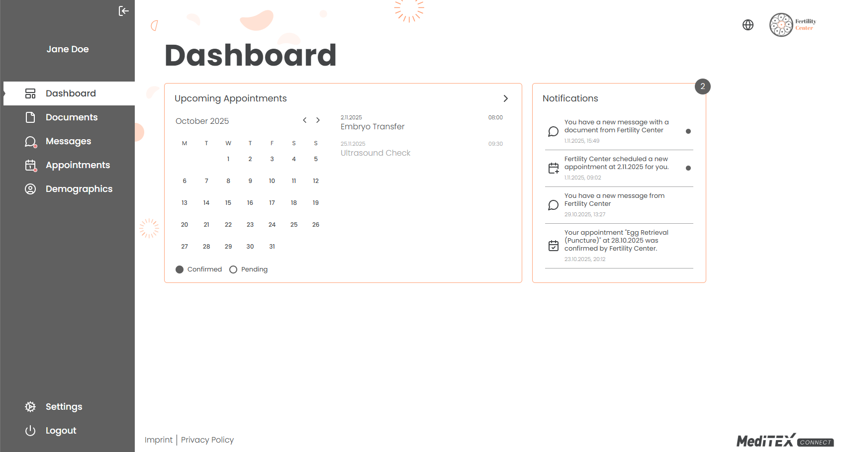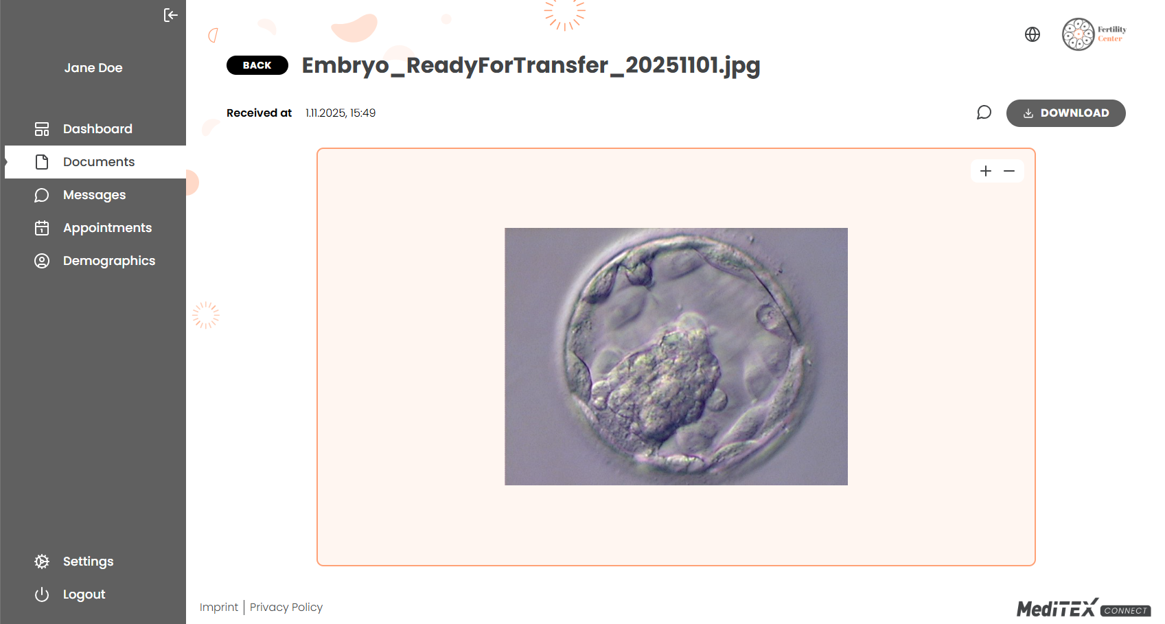 MedITEX Connect also serves as a personal information hub, giving patients access to their essential demographic details exactly as stored in MedITEX IVF.