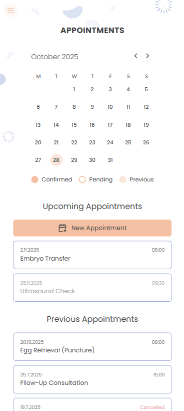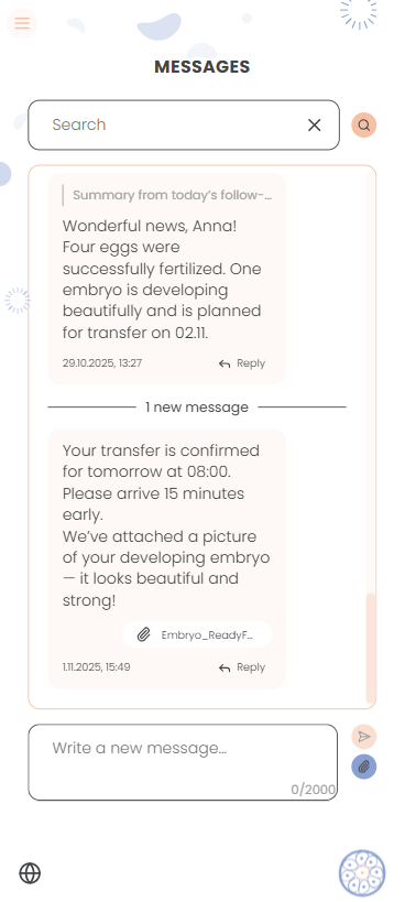 With Connect, your patients stay in touch with your clinic throughout their entire fertility journey. They can easily schedule appointments, exchange messages, and upload documents, all in one place.